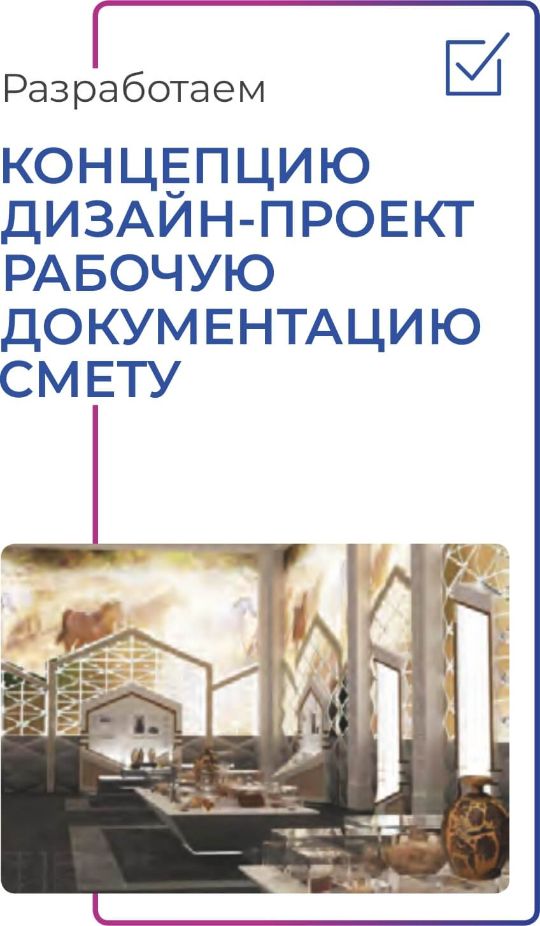 Российская музейная компания успешно занимается разработкой и созданием музейно-выставочных экспозиций «под ключ» более 19 лет по всему миру. Комплексный подход, собственное производство, квалифицированный персонал позволяют нам создавать уникальные проекты и реализовывать их «под ключ» четко в установленные сроки и в рамках бюджета.