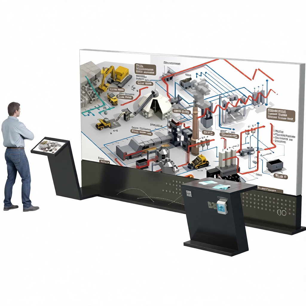 - мобильный сборноразборный мультимедийный комплекс, состоящий из стенда, с размещенными на нём модульным LED экраном, сенсорным терминалом управления диагональю 32 дюйма, стойки с раздаточными материалами. В основании подиумов размещены карманы с раздаточными брошюрами и QR - код с переходом на сайт компании.