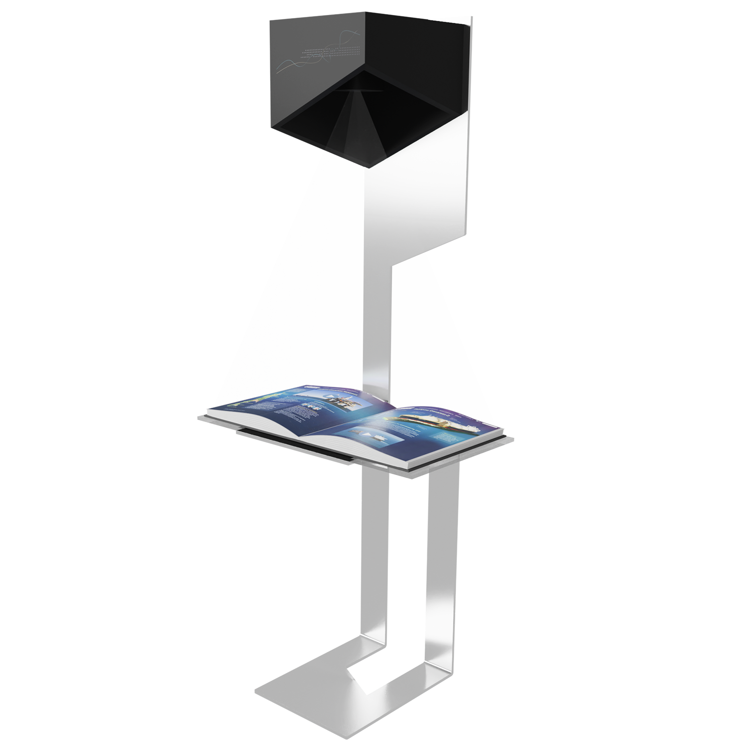 Электронная книга с реальными страницами, на которые проецируется изображение, изменяющееся при перелистывании страницы. Возможна демонстрация фото- видео- аудио- материалов.