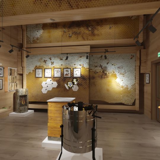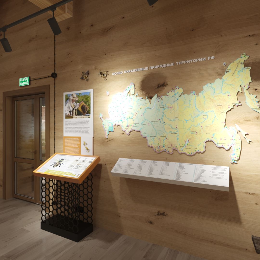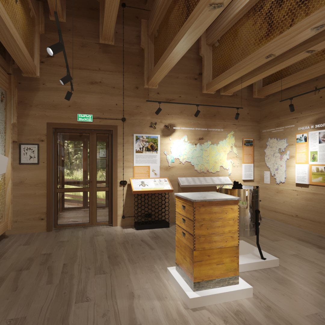 Интерьер музея пчелы оформлен в натуральных тонах, с использованием элементов природы, что создает атмосферу гармонии и спокойствия. Экспозиции представлены в виде интерактивных инсталляций, мультимедийных презентаций, моделей ульев, сот и пчеловодческой утвари, позволяя посетителям познакомиться с жизнью пчел ближе и понять их важное значение для экосистемы.