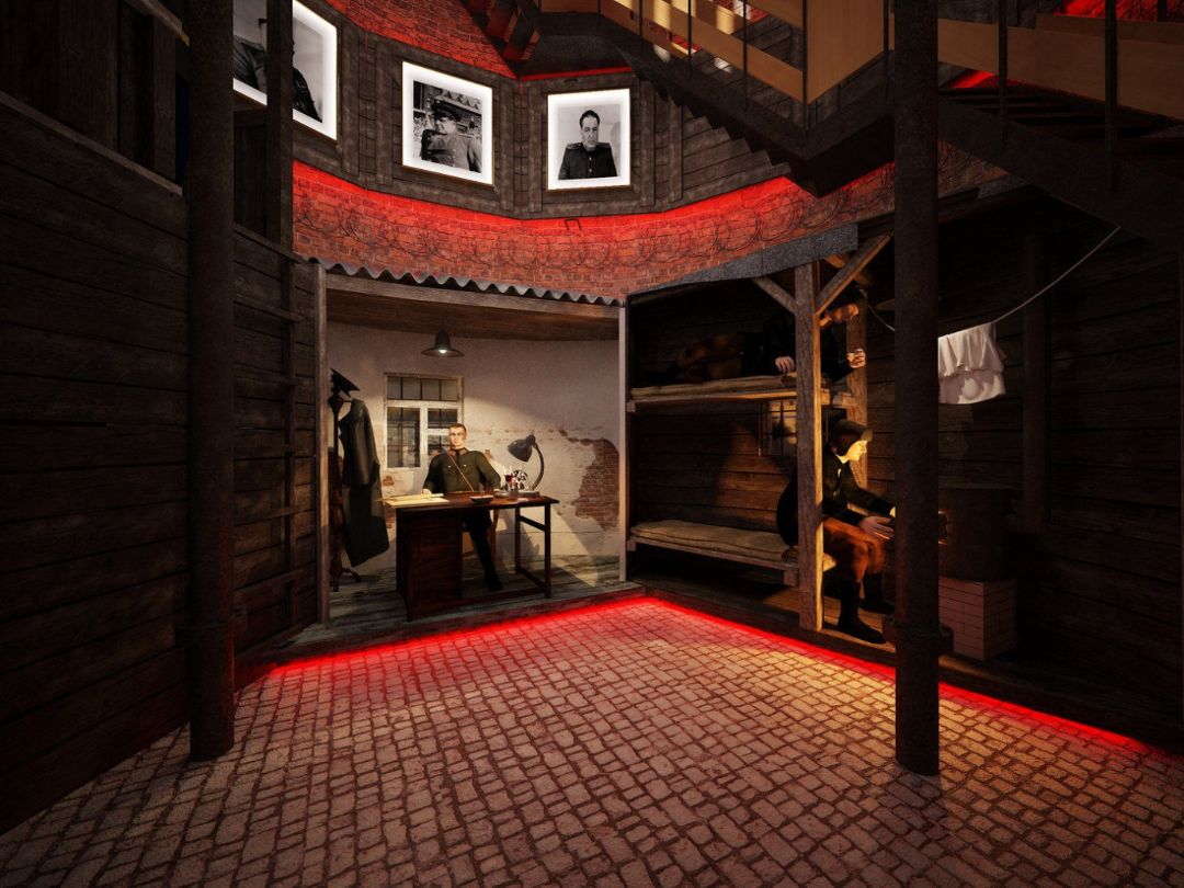 Экспозиция второго яруса представляет собой реконструкцию фрагментов жилой среды особого лагеря “Минеральный”: