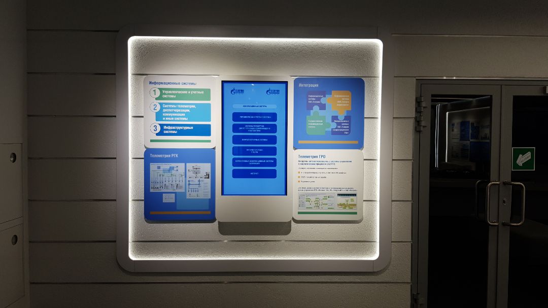 Для музея ООО "Газпром Межрегионгаз Уфа" были разработаны и изготовлены интерактивные стенды  - полиграфические стенды и сенсорные терминалы 43"(материал по выбору заказчика (ЛДСП, МДФ, ПВХ, композит).
