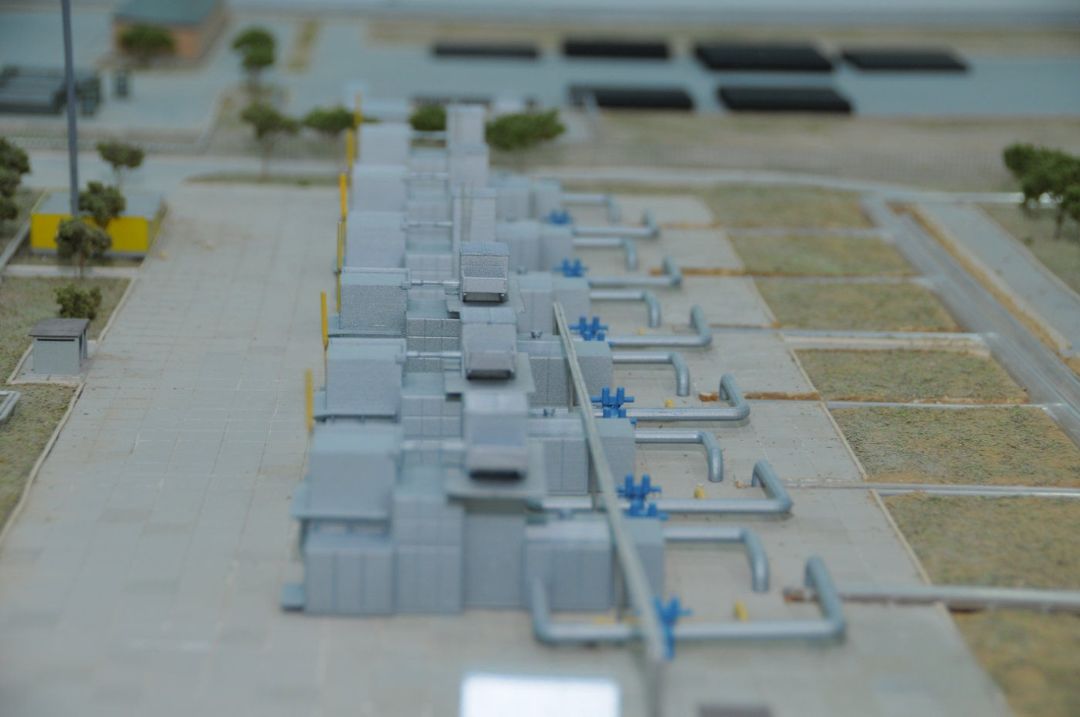 Макет компрессорной станции выполнен в масштабе 1:350, оснащен светодиодной динамической подсветкой и информативными вырезами.