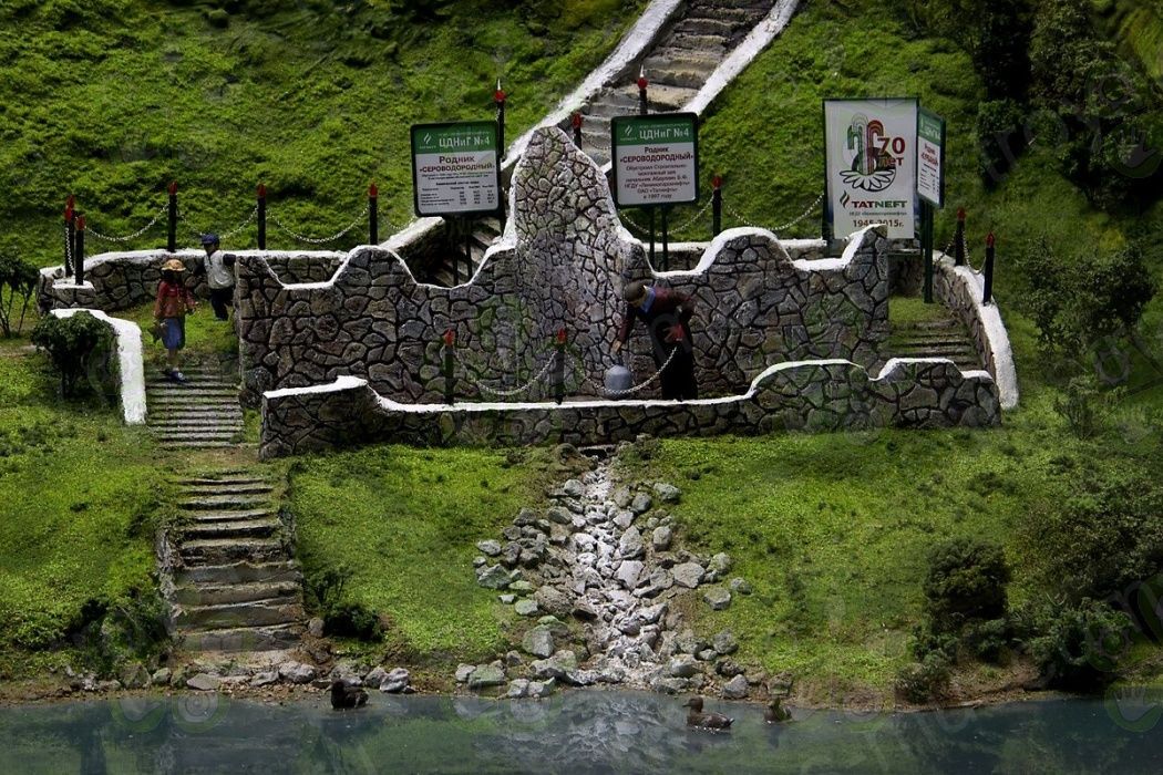 Макет представляет собой изображение родника в рамках сохранения и благоустройства окружающей среды.