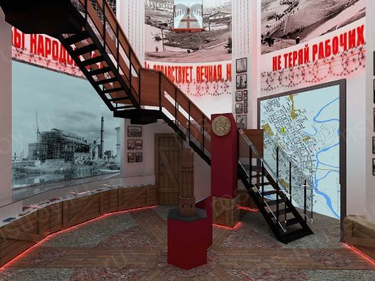 Рабочий дизайн-проект «Музея истории политических репрессий» был реализован специалистами нашей компании за 5 недель. Музей запланирован к размещению в ключевой достопримечательности г. Инта-в водонапорной башне, построенной в начале ХХ века. Музейная экспозиция площадью 96,3 м представляет собой интереснейшую конструкцию с лестницей, ведущей посетителей вверх «по ступеням истории». Цель создания музея – увековечивание памяти о жертвах политических репрессий, формирование гражданского общества, восстановление исторической правды и справедливости. Помещением для создания музея послужила историческая архитектурная достопримечательность города Инта– водонапорная башня.
