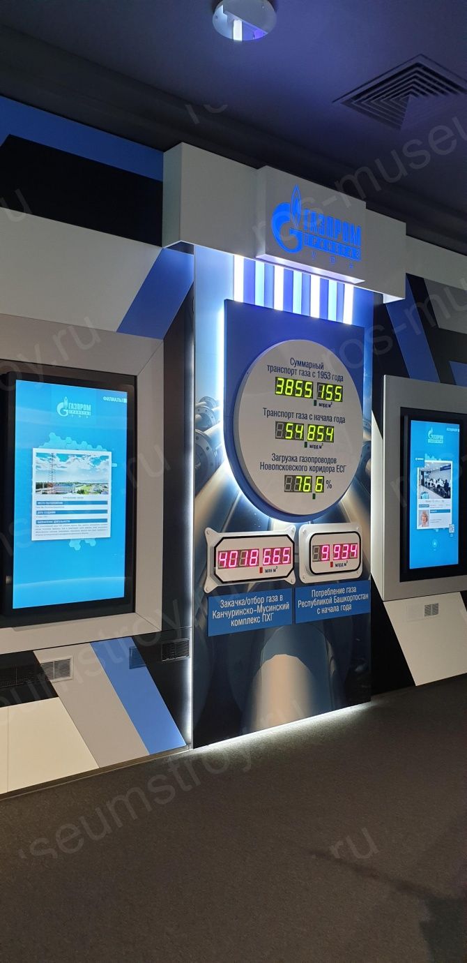 В рамках оснащения интерактивным оборудованием интерактивного корпоративного музея ООО "Газпром трансгаз Уфа" наша команда изготовила эксклюзивное интерактивное оборудование – интерактивный счетчик, изображающий количество транспортируемого в Республике Башкортостан природного газа.
