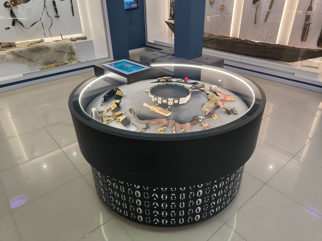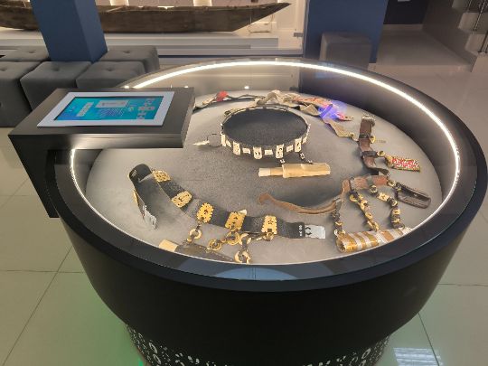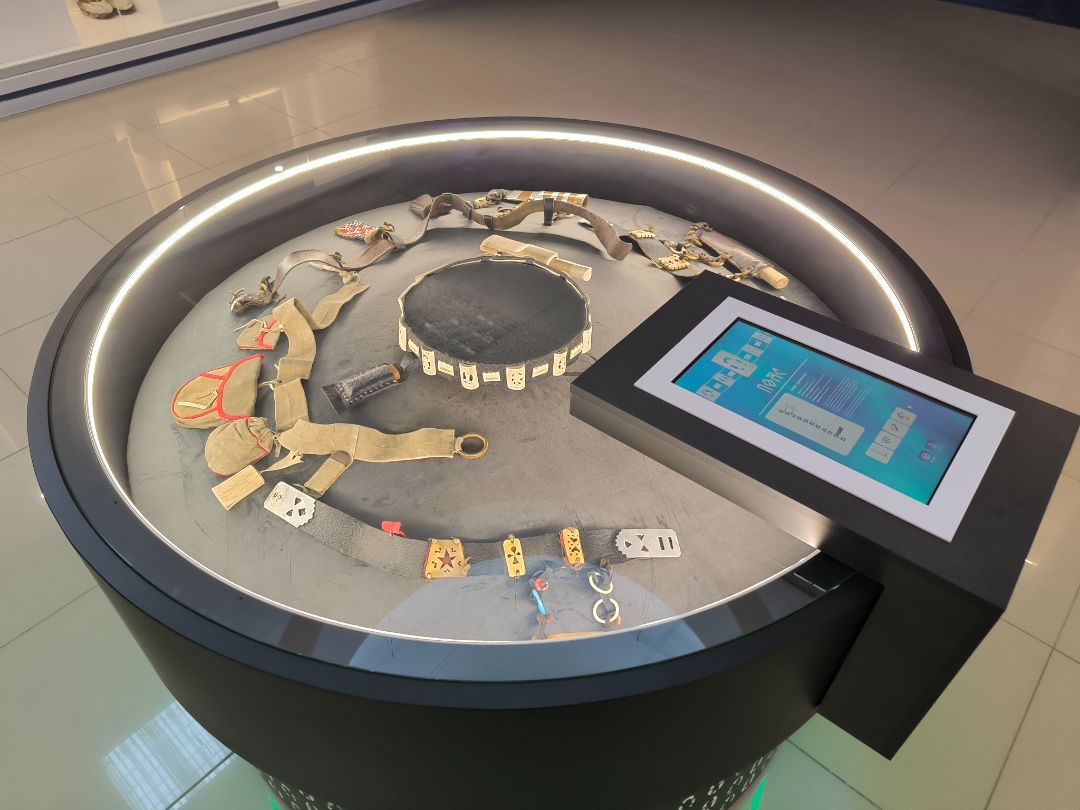 Пояс размещен в центре зала в круглой интерактивной витрине на сенсорном экране которой демонстрируется полная информация об экспонате.