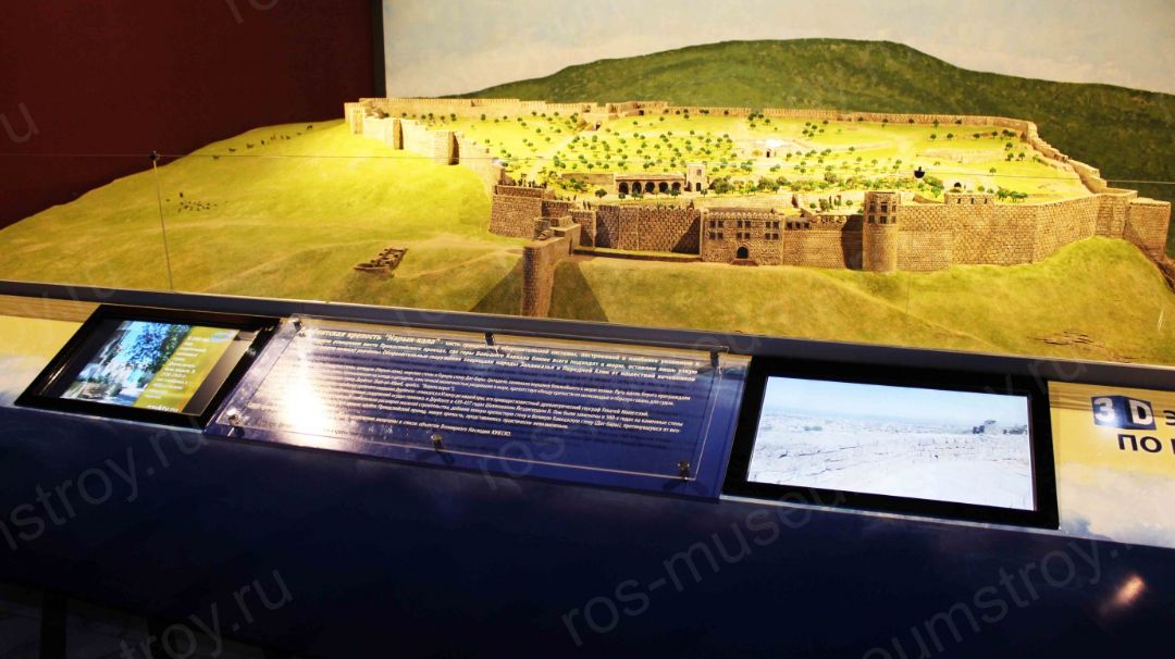 В рамках создания «Под ключ» интерактивной музейной экспозиции «Мой Дагестан» наша команда изготовила эксклюзивное интерактивное оборудование, в том числе интерактивный музейный макет Дербентской крепости с 3D панорамным туром при помощи сенсорного терминала 32 дюйма.