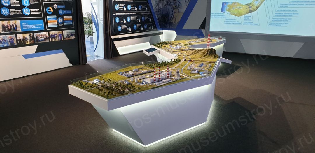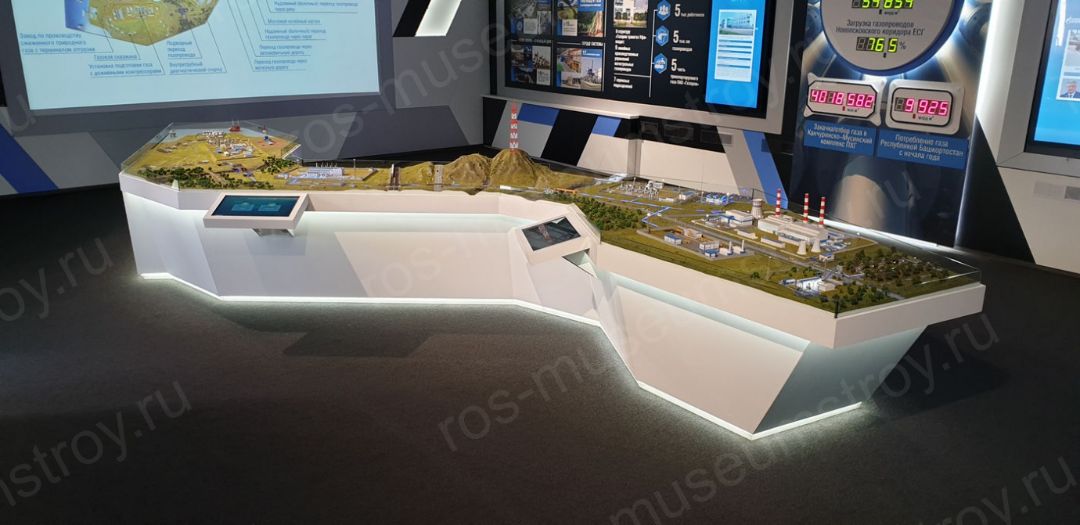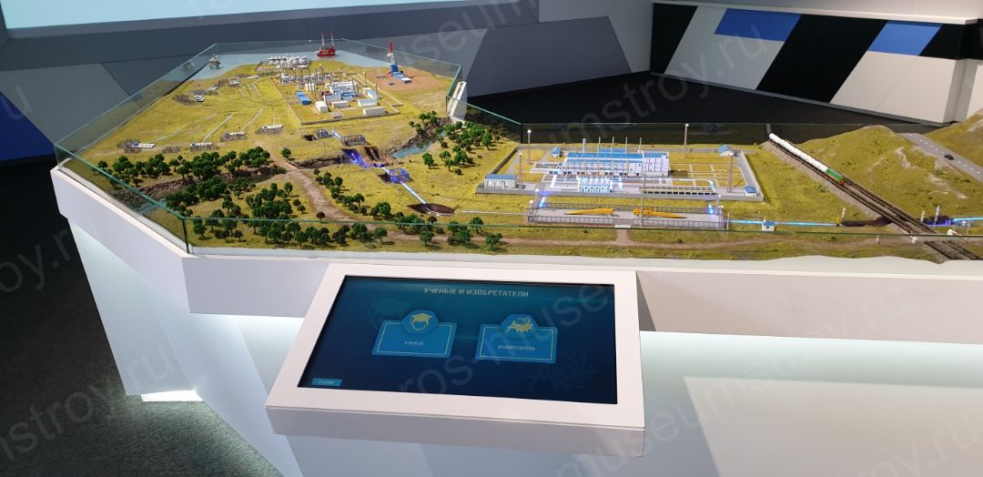 Интерактивный макет изображает основные участки добычи, подготовки, транспортировки, хранения, переработки газа.