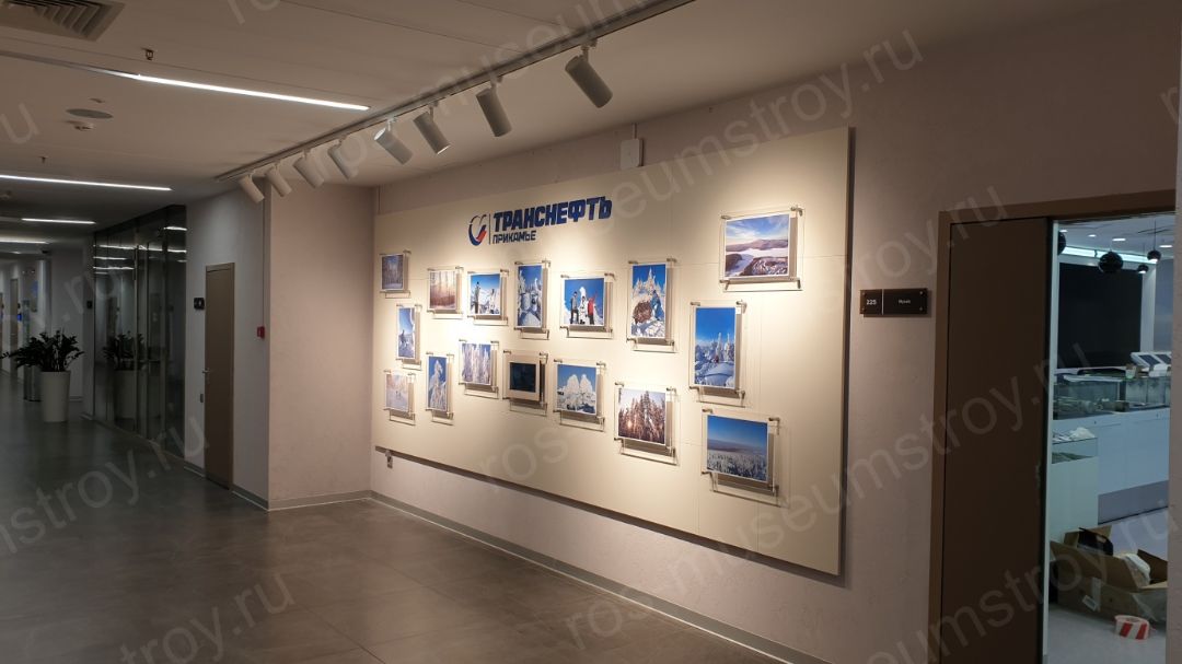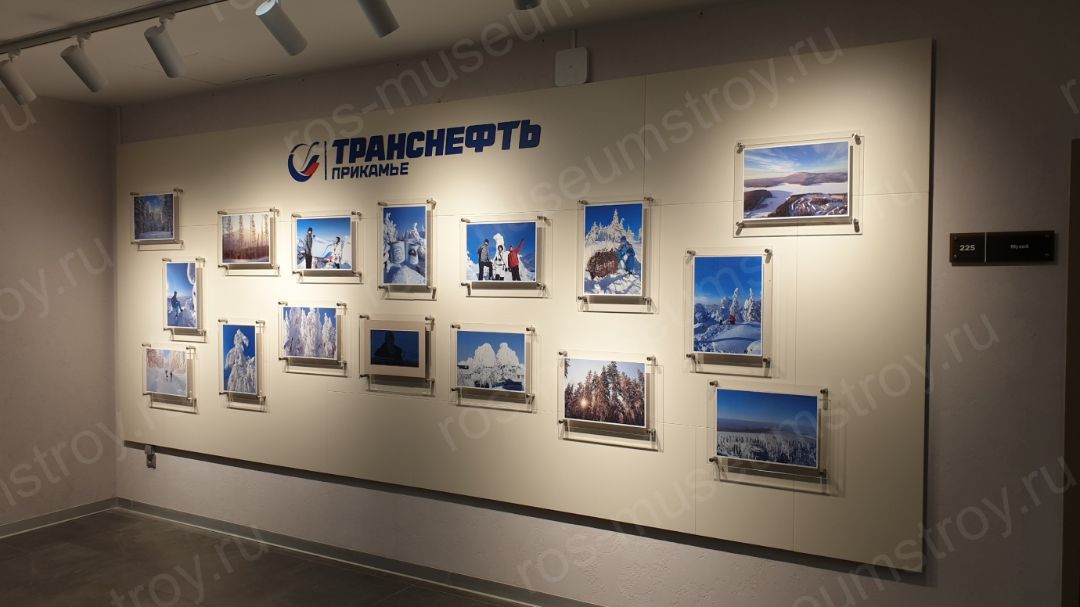 Нашей командой создан интерактивный стенд для музея ПАО "Транс-Нефть Прикамье" в г. Казани Использованы современные материалы, корпоративные цветовые решения и освещение. Фотографии установлены в специальные конструкции, грамотно размещены, благодаря этому идеально вписываются в общую инсталляцию.