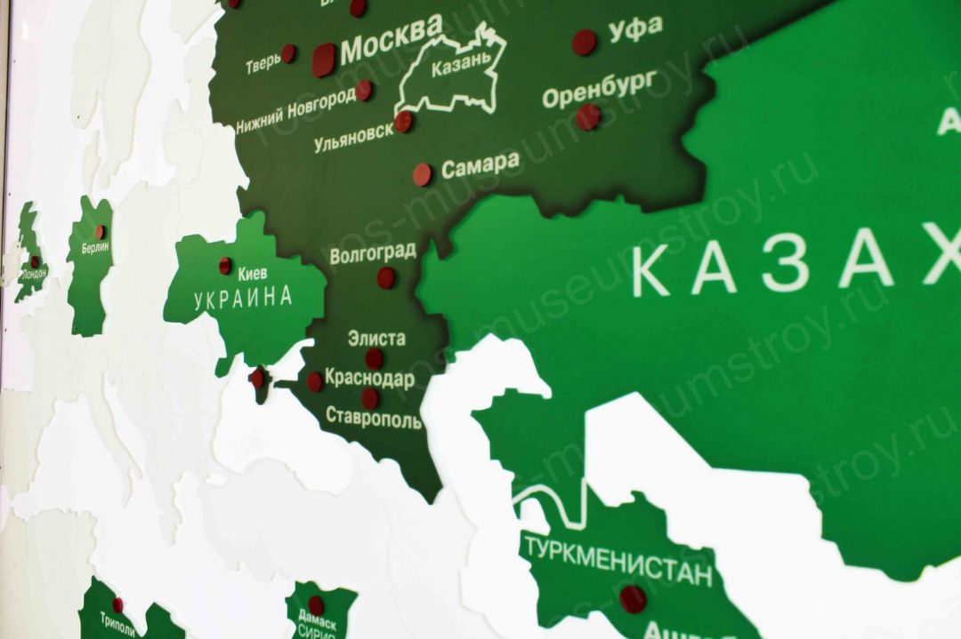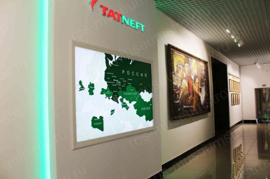 В рамках создания "Под ключ" музея нефти ПАО «Татнефть» наши специалисты изготовили музейные экспонаты, в числе которых карта присутствия компании "Татнефть"
