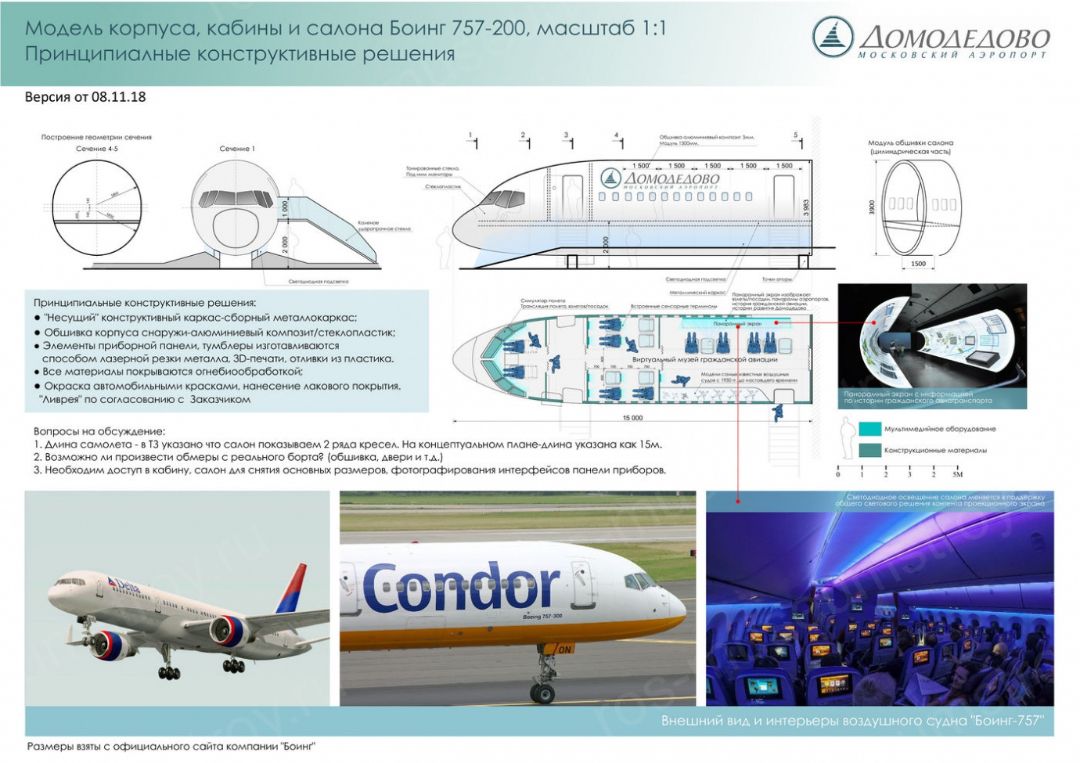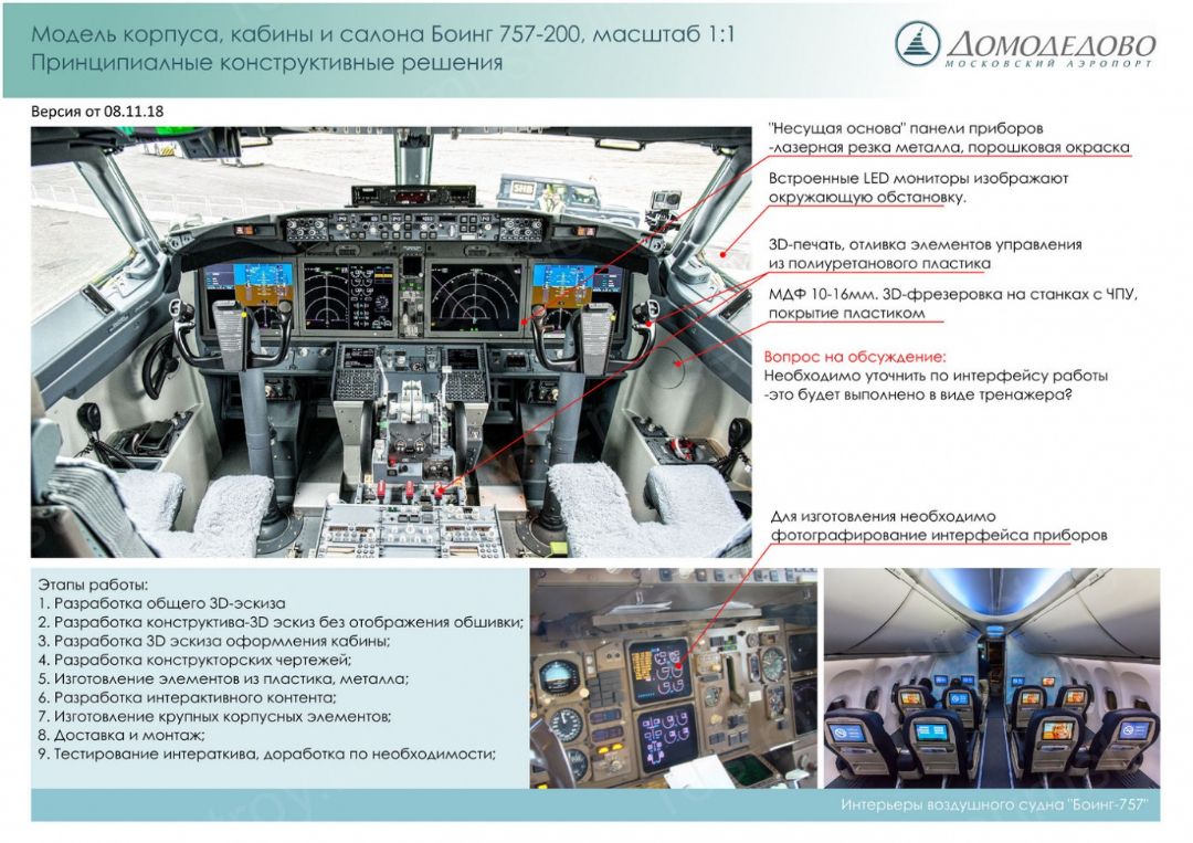 - кабина и салон самолета «Боинг -757-200» в масштабе 1:1