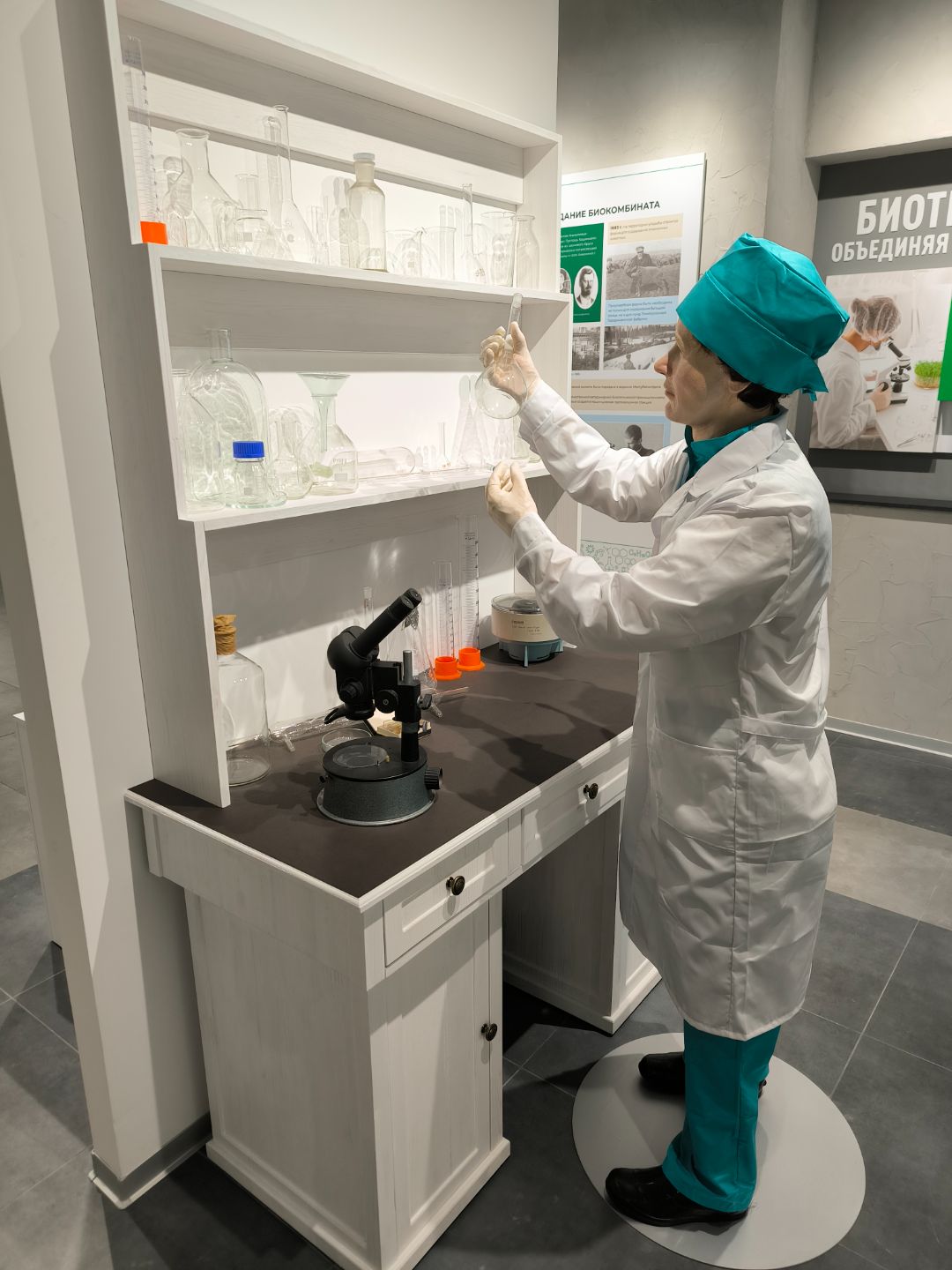 Манекен лаборант был изготовлен для Музейно-образовательного комплекса «Щёлковского биокомбината» в Лосино-Петровском.