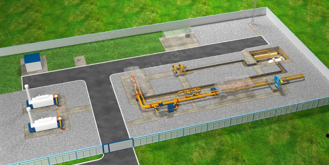 Контент сенсорного информационного терминала содержит анимированную 3D модель автоматической газораспределительной станции. Анимация показывает процесс понижения давления и одорирования газа. С целью отображения внутреннего оборудования АГРС технологические блок-боксы выполнены с прозрачными стенками.
