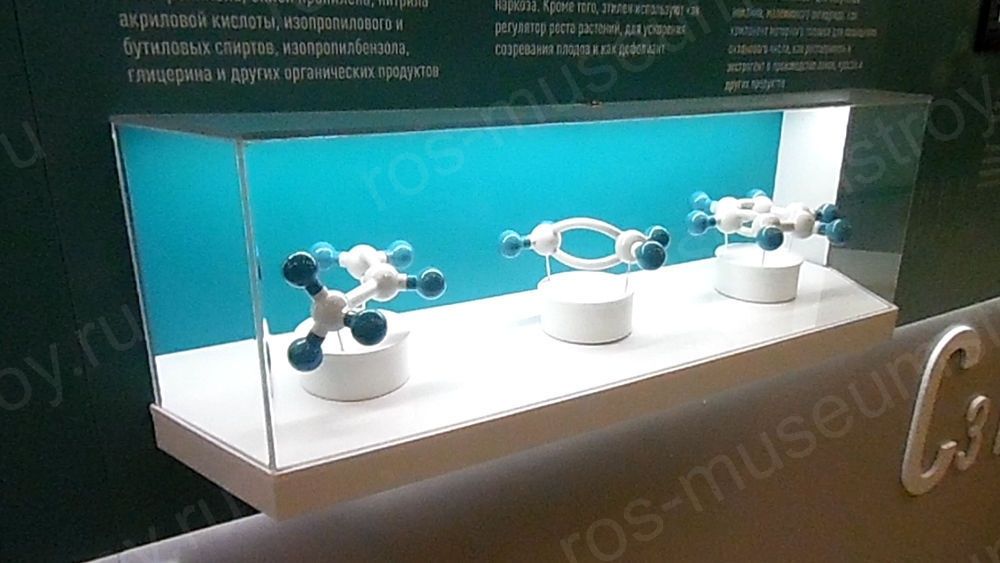 В рамках создания "Под ключ" корпоративного музея ООО "Сибур-Кстово» наши специалисты изготовили музейные экспонаты, в числе которых модели молекул с вращением.