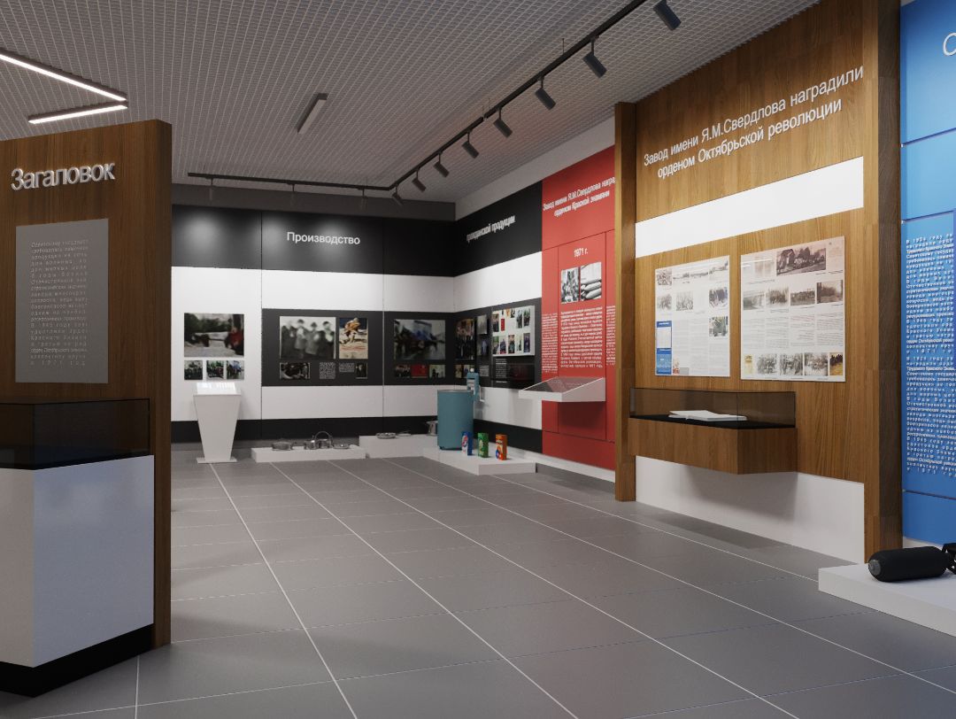 Дизайн проект музея "ФКП завода им. Свердлова Я.М." нацелен на создание пространства, которое будет отражать богатую историю завода и его вклад в промышленность.