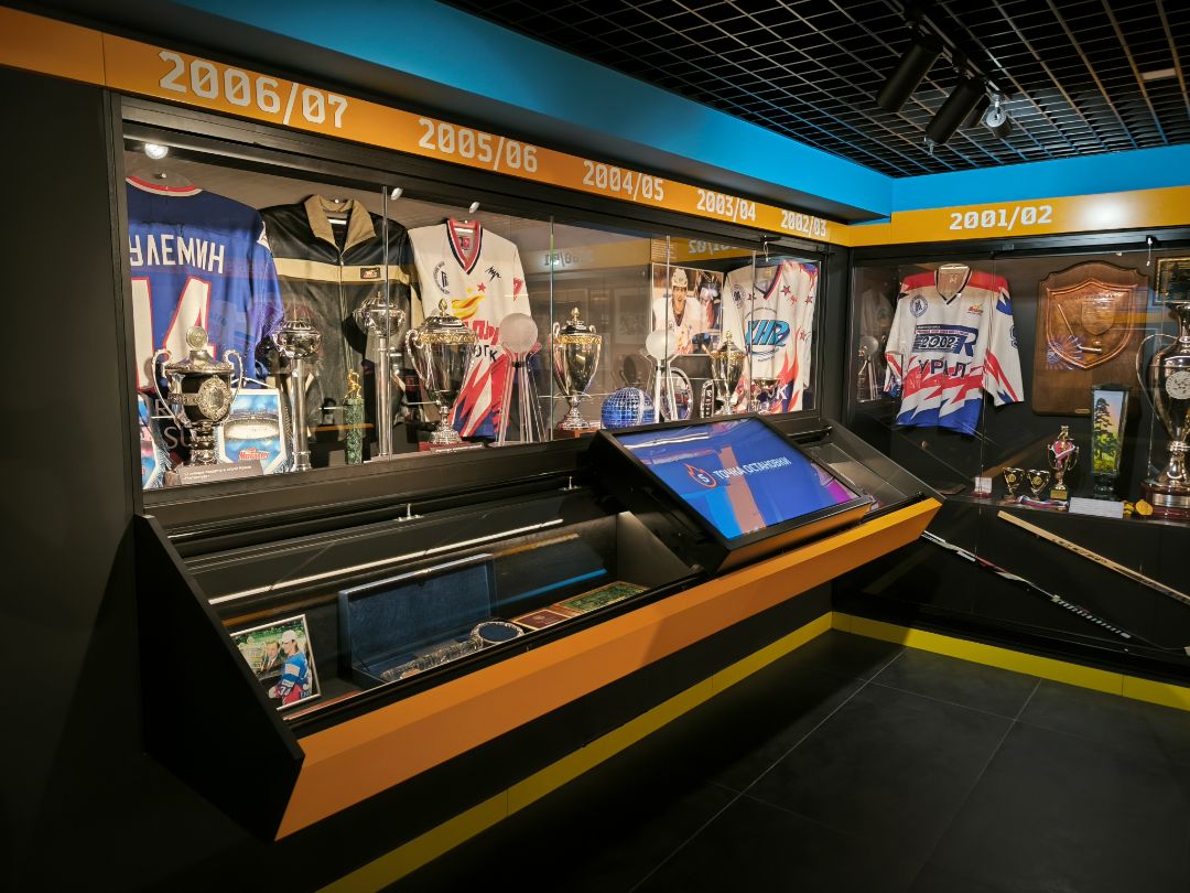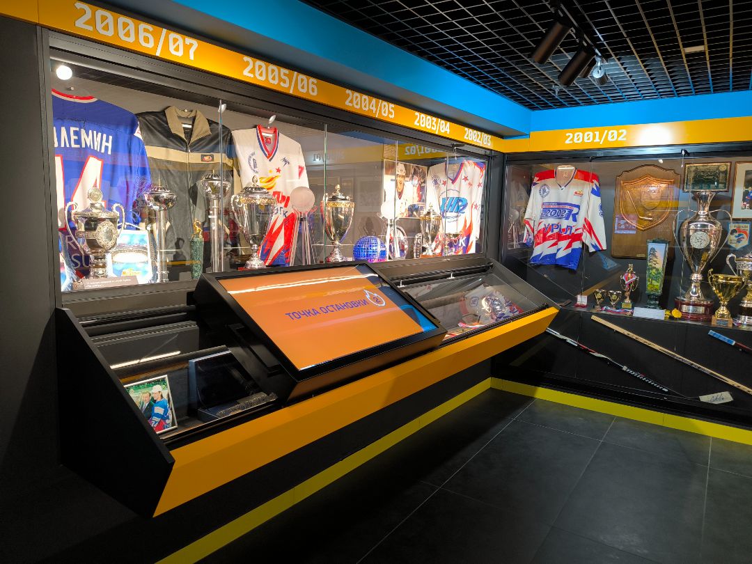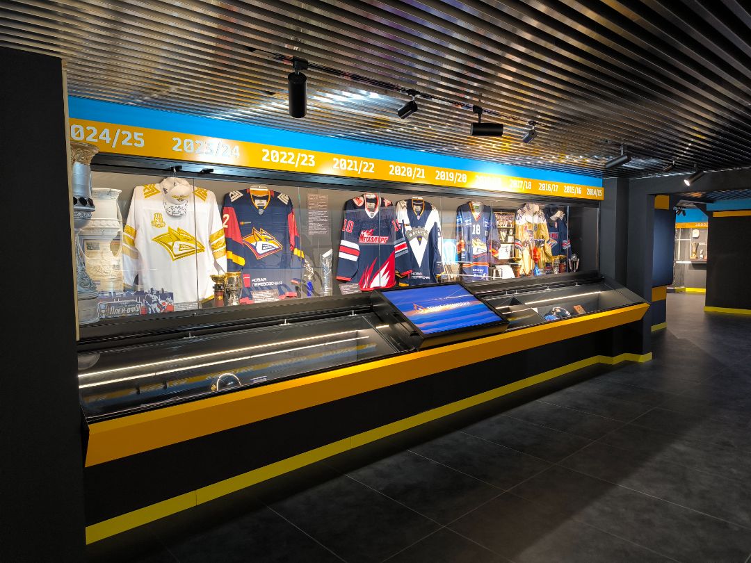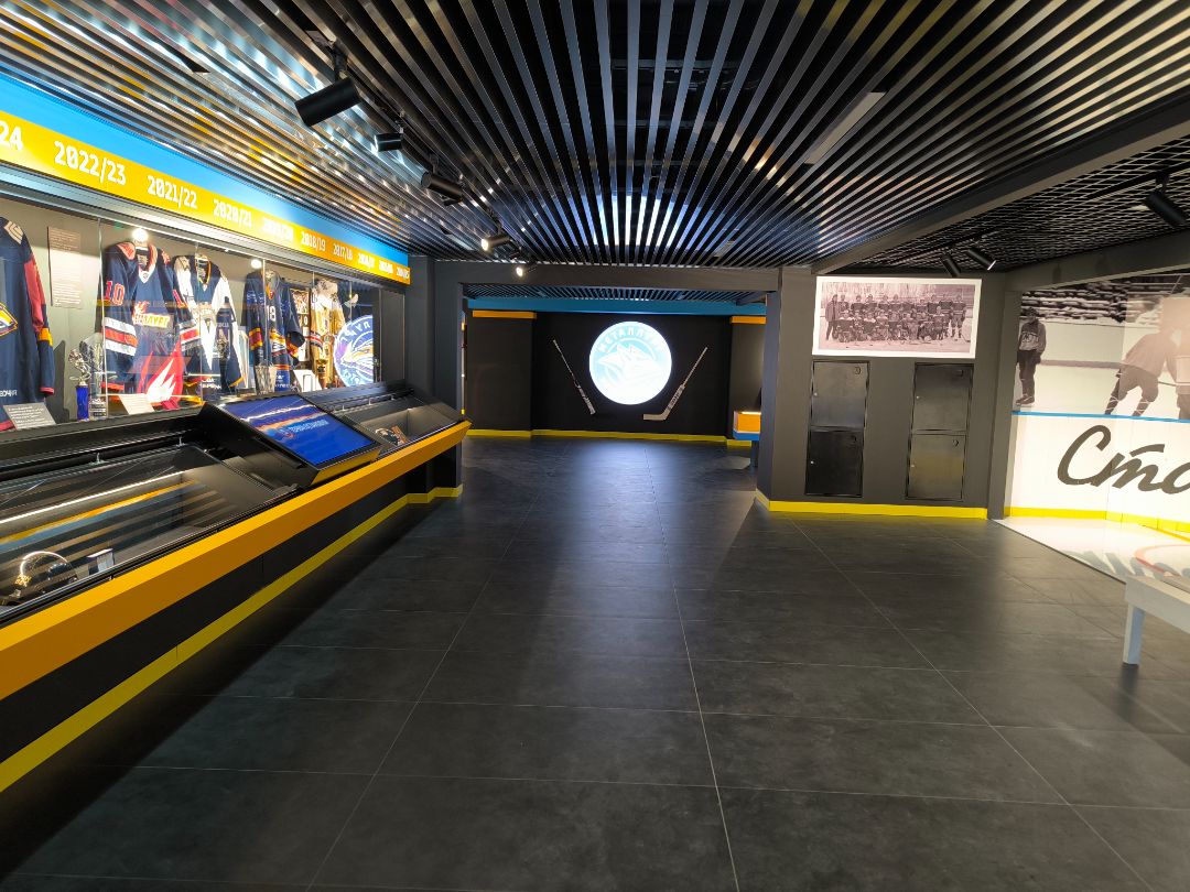Музей ХК «Металлург» представляет собой гармоничный синтез истории, технологий и хоккейного духа. Индустриальные материалы, темная гамма, продуманное освещение и, главное, интерактивные экспозиционные решения создают мощную эмоциональную связь с болельщиками. Зонирование по эпохам позволяет проследить эволюцию клуба от скромных начинаний до настоящего времени, а интерактивные технологии делают посещение музея увлекательным и запоминающимся путешествием во времени.