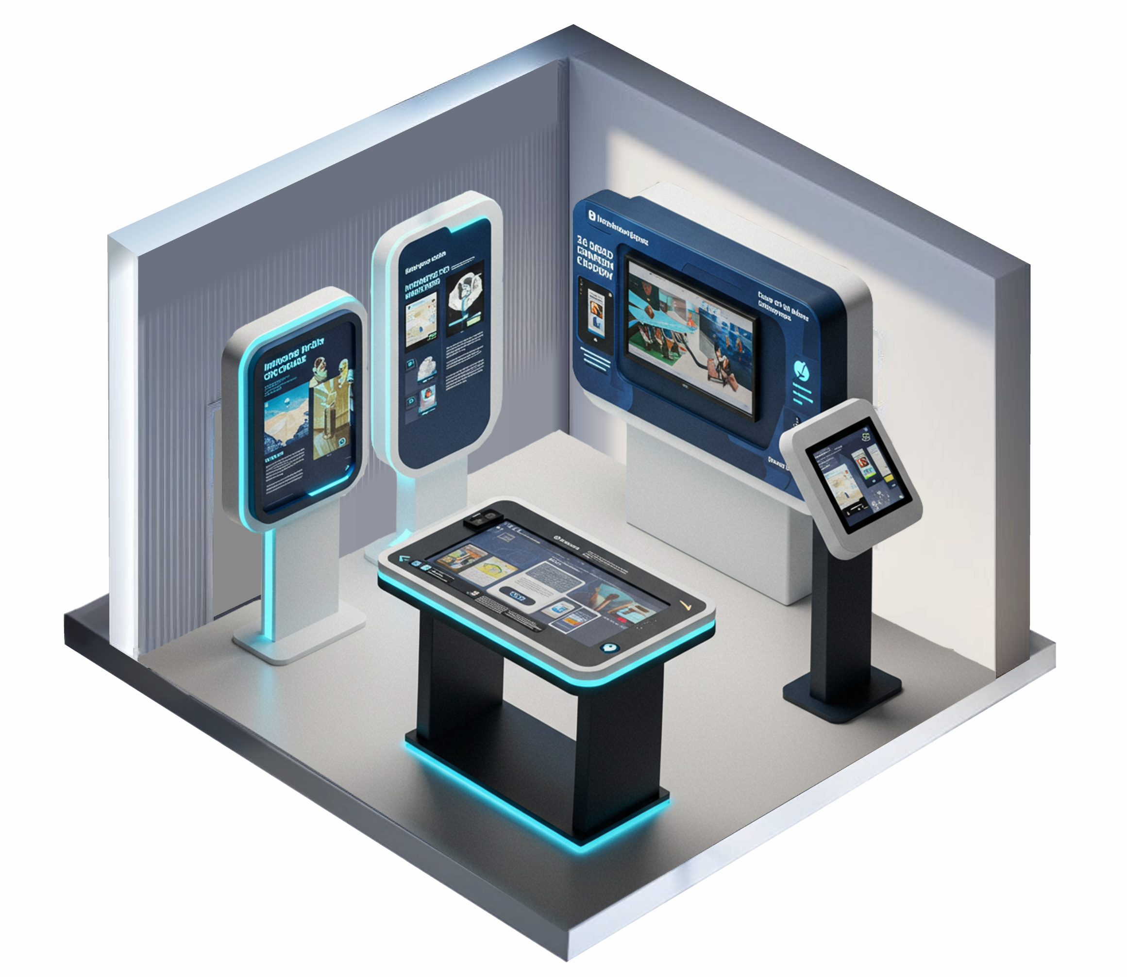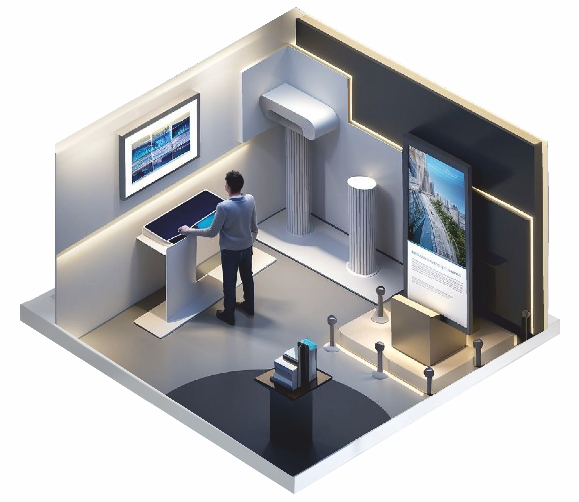 Взаимодействие между интерактивным оборудованием, экспонатами и информационным слоем.