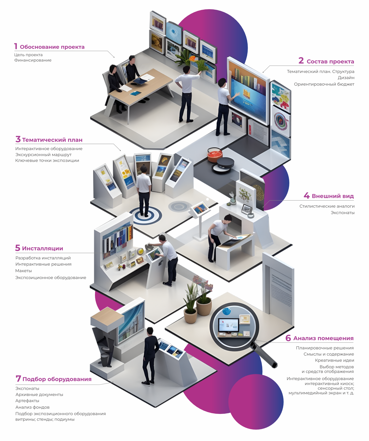 - Максимально подробные решения по оформлению экспозиционного пространства