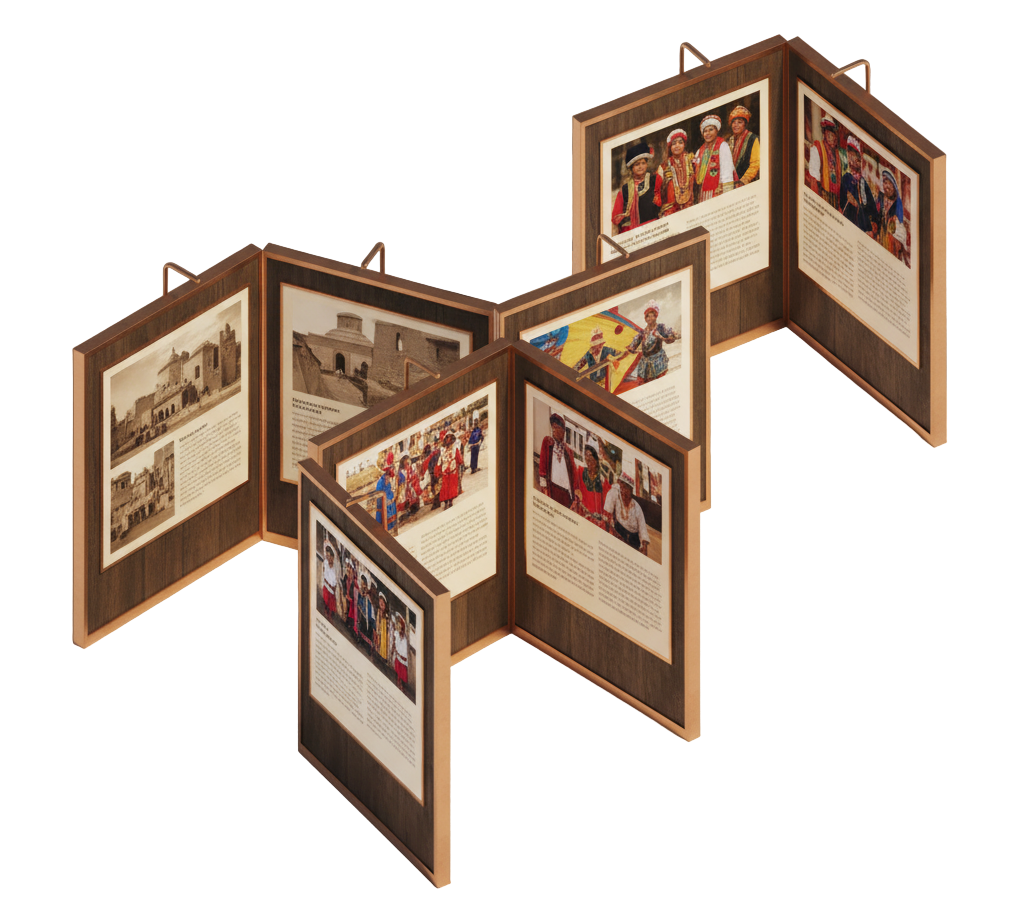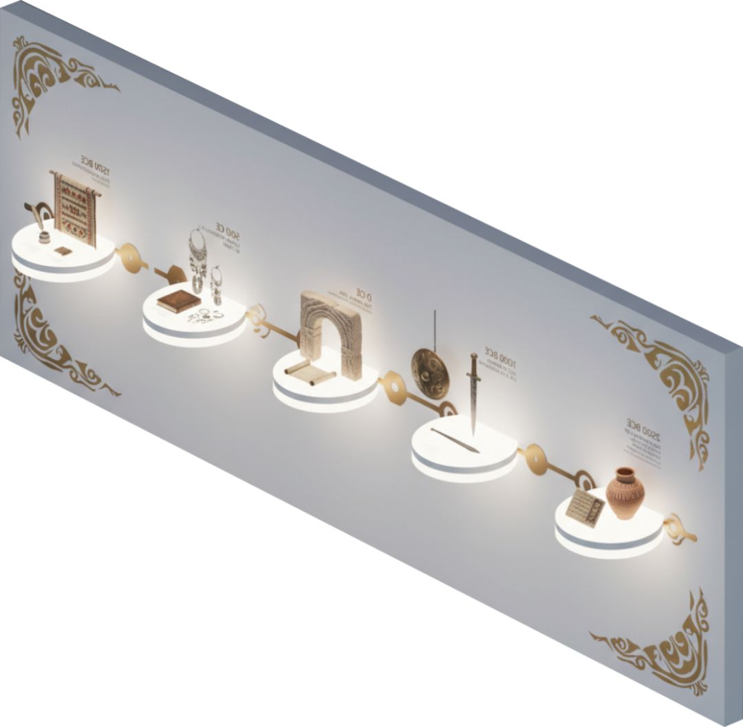Стена истории народа с тактильными экспонатами, чтобы увидеть путь становления и развития культуры и истории предков, а не сухой список дат.
